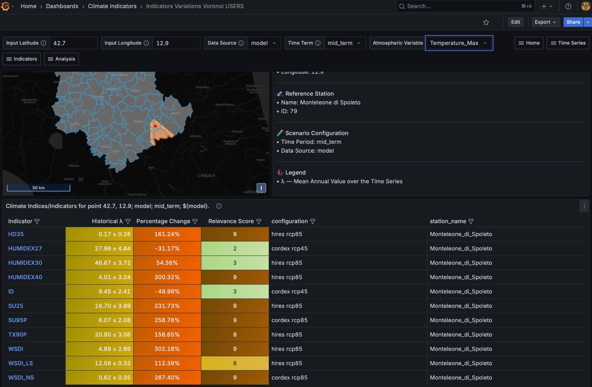 Servizio per la "Realizzazione dell'analisi climatica della Regione Umbria e del sistema di archiviazione e visualizzazione dati" funzionale all'elaborazione del Focus sull'adattamento al cambiamento climatico allegato all'aggiornamento della Strategia di Sviluppo Sostenibile Regionale e successivi Piani di Azione. Il servizio è finanziato dal PR FESR Umbria 2021-2027 nell'ambito del Progetto di importanza strategica RIMU-CLIMA.